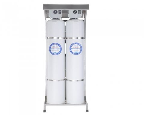 Hệ thống lọc bao gồm 3 giai đoạn lọc: Nước cấp được bơm tăng áp đẩy qua các cột lọc và lõi lọc.